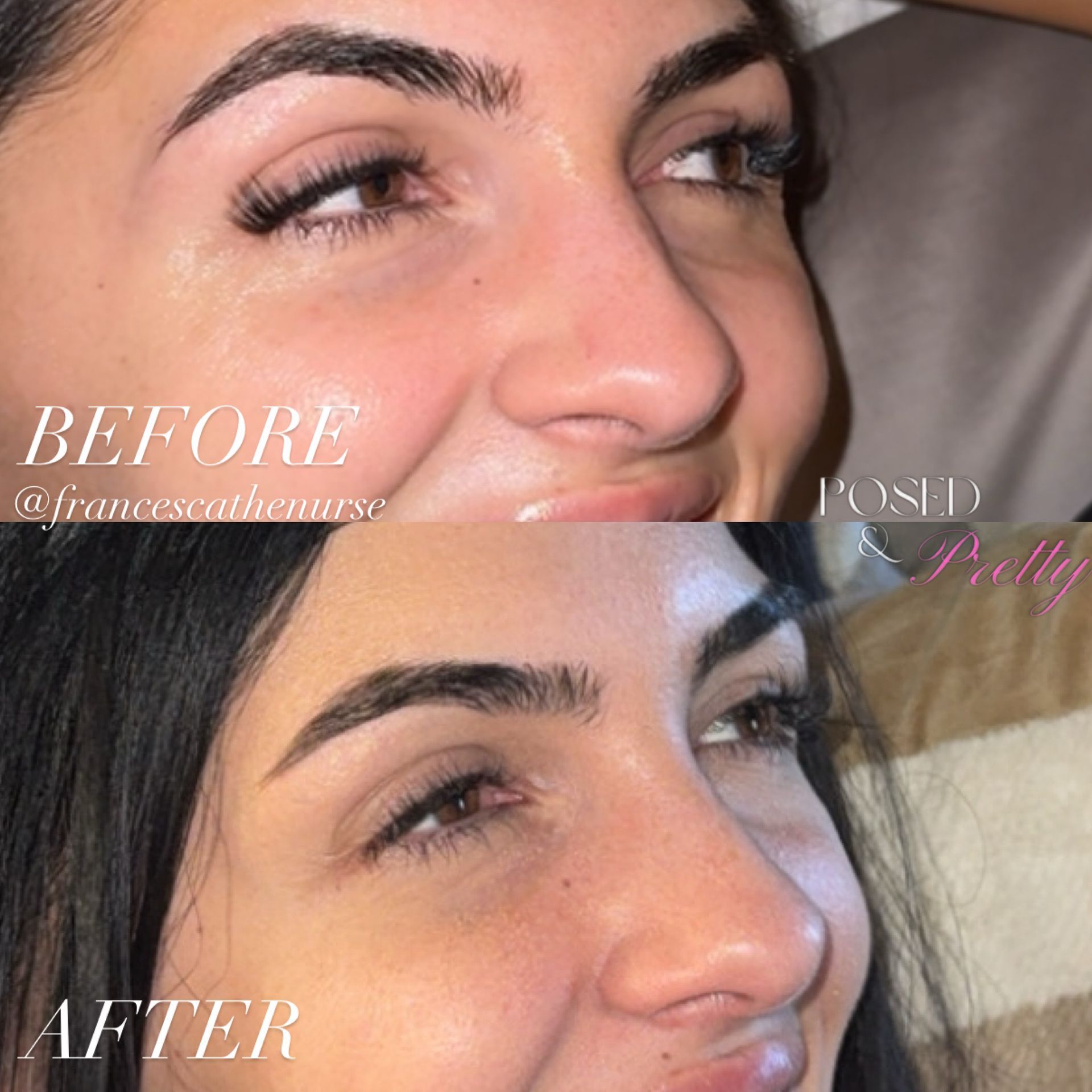 At Posed & Pretty, we use neurotoxins to physically refine and slim the appearance of the nose by targeting specific muscles that cause it to flare or droop. This non-surgical approach is designed to narrow the nostrils and lift the nasal tip for a more streamlined profile.