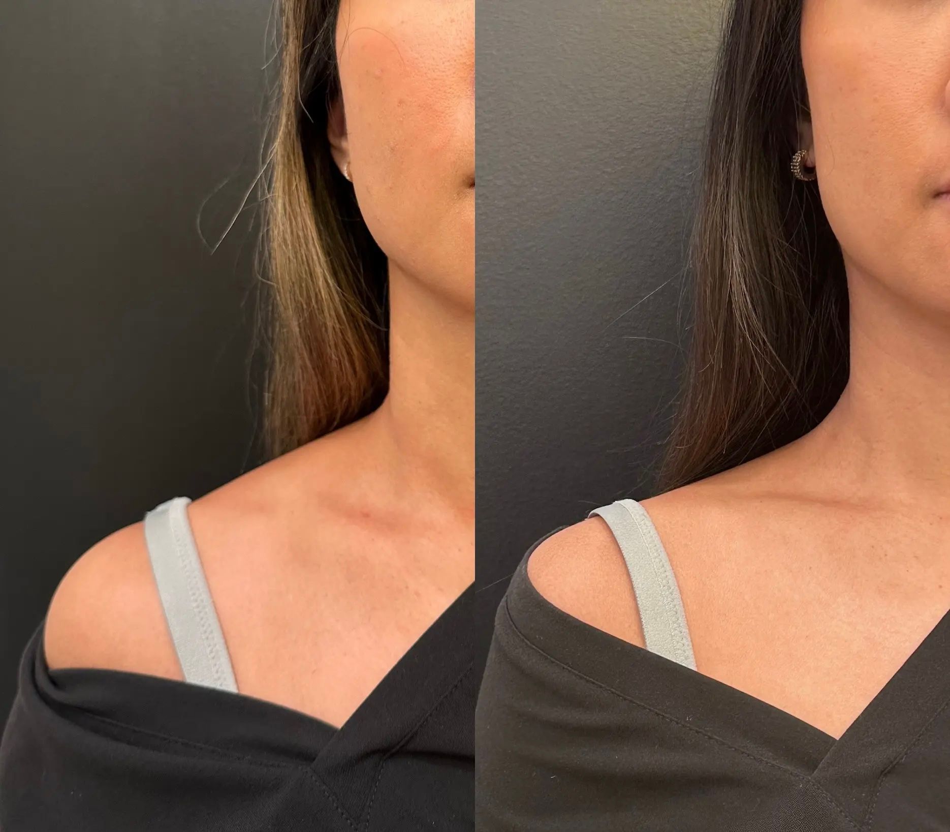 Overdeveloped trapezius muscles can create a bulky or "squared-off" appearance at the base of the neck. By relaxing these muscles with neurotoxin, they gradually decrease in mass, resulting in a smoother, more tapered shoulder line and the appearance of a longer, more slender neck.